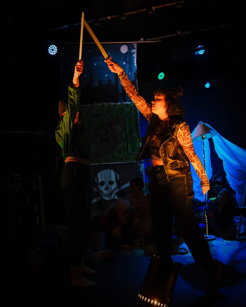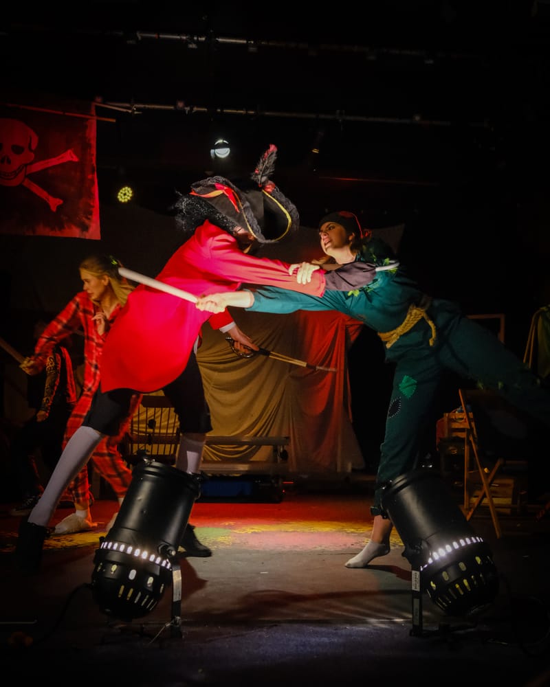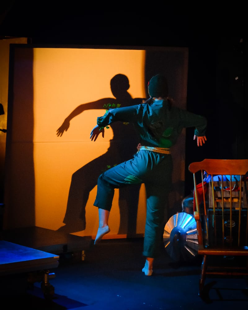 Peter Pan made use of shadows and sidelighting in particular. I also used hidden birdies within the set to create the crocodile and a uplighting to create the illusion of flight. I also created a moving lighting sequence in order to show the journey home from Neverland.
